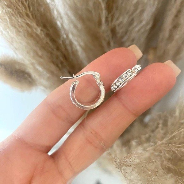 Argollas de acero blanco con piedritas.