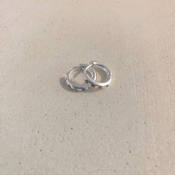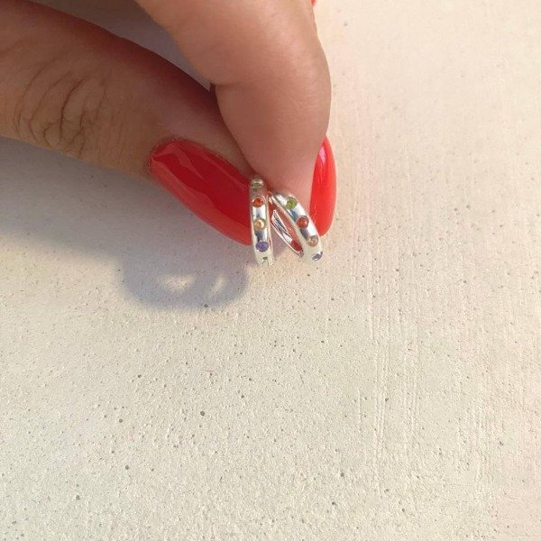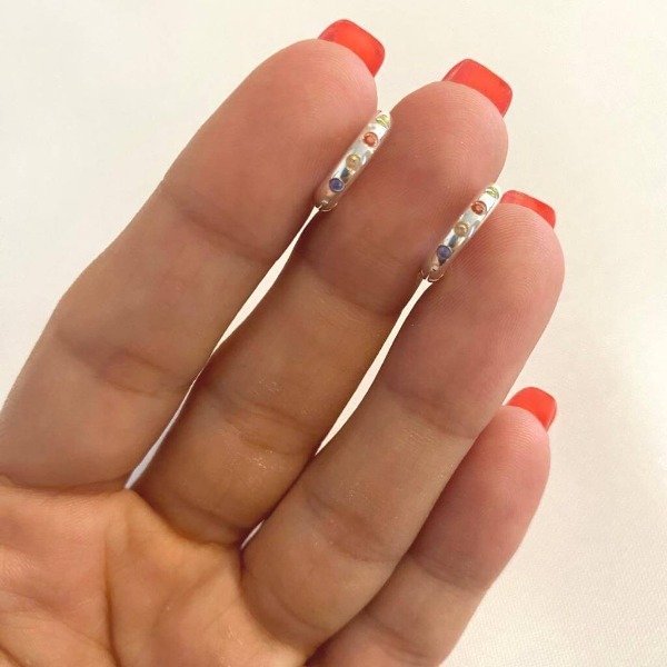 Argollitas de acero blanco con piedritas multicolores.