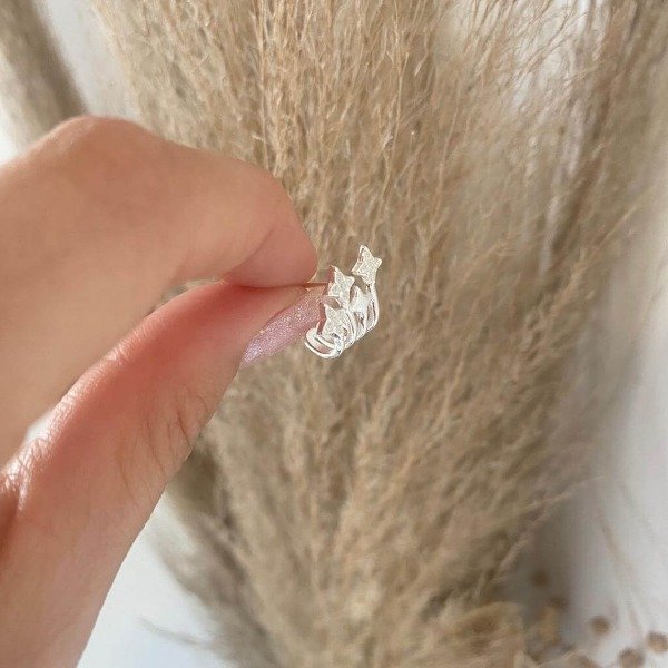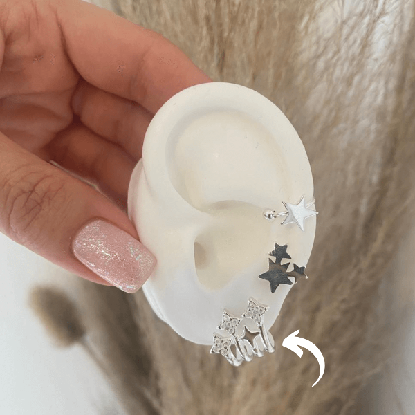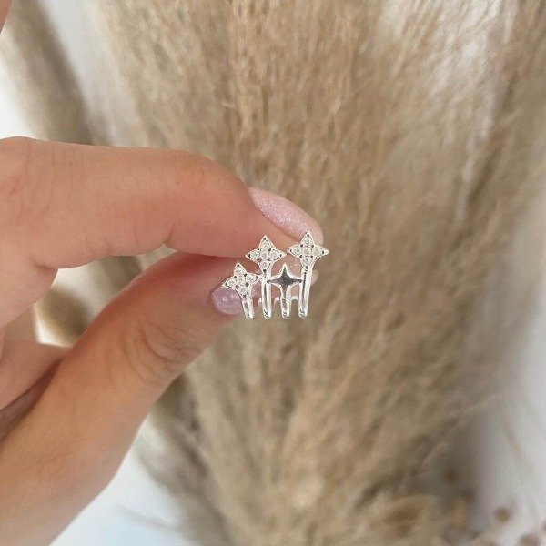 Aros pasantes de acero blanco con estrellas y brillitos.