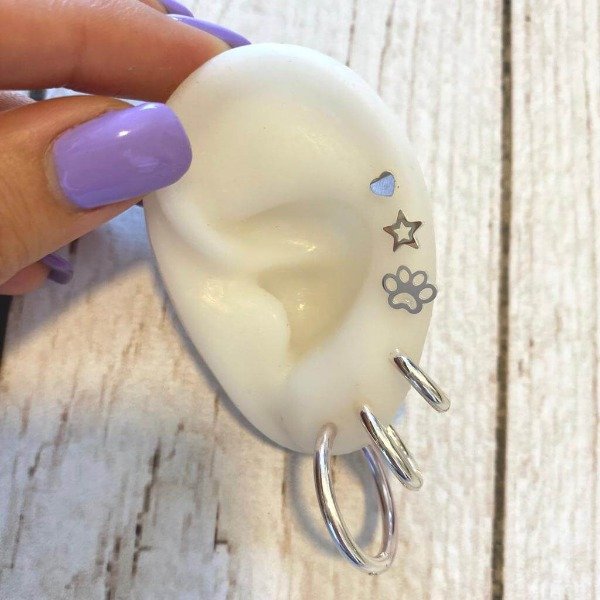 Aritos pasantes de acero blanco. Podés elegir entre el Paw, Mini Estrellita o Mini Corazón.