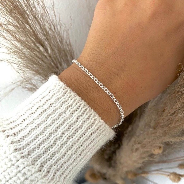Pulsera de acero blanco con eslabones chiquitos.